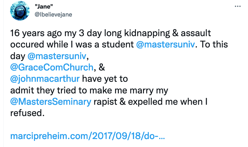Do you hear me? — Another “Jane Doe” who suffered at the hands of the leadership at The Master’s University, The Master’s Seminary and Grace Community Church. Nov 26, 2017.