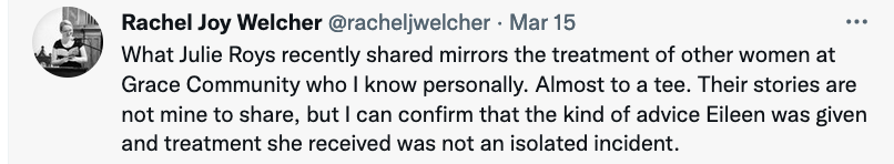 Head of Counseling at John MacArthur’s School: Wife Should Endure Abuse Like Missionary Endures Persecution [Internet Archive link] — Sarah Einselen, The Roys Report, April 5, 2022.
