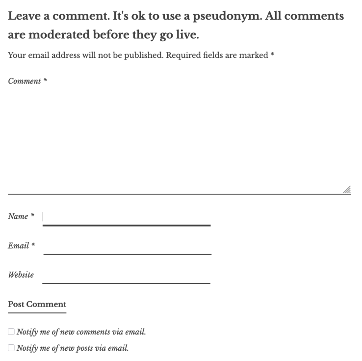This is what the comment form looks like: